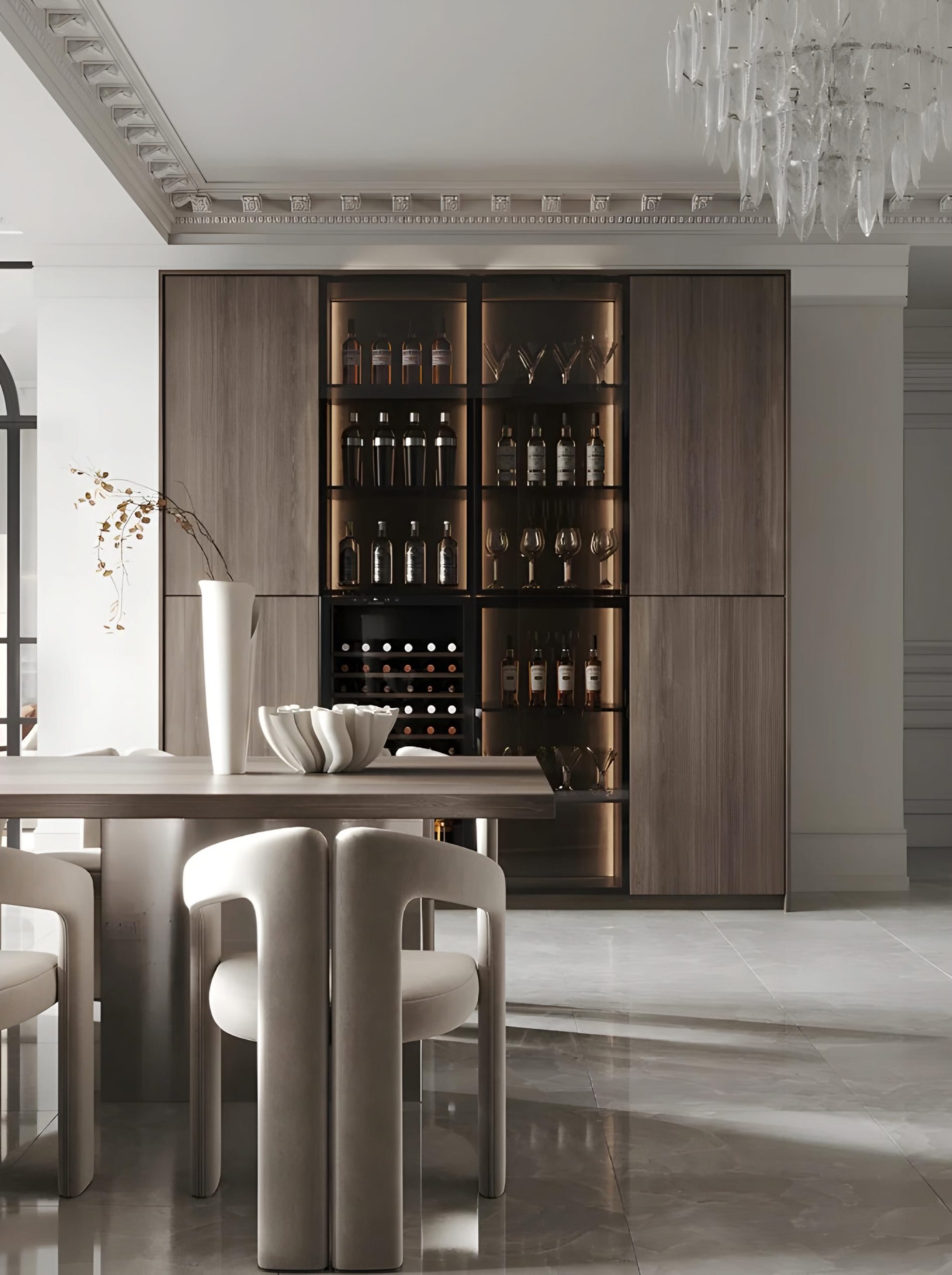 Lighting is crucial. We can install under-cabinet LED strips to illuminate your workspace or ambient lighting to set the mood for evening entertaining.