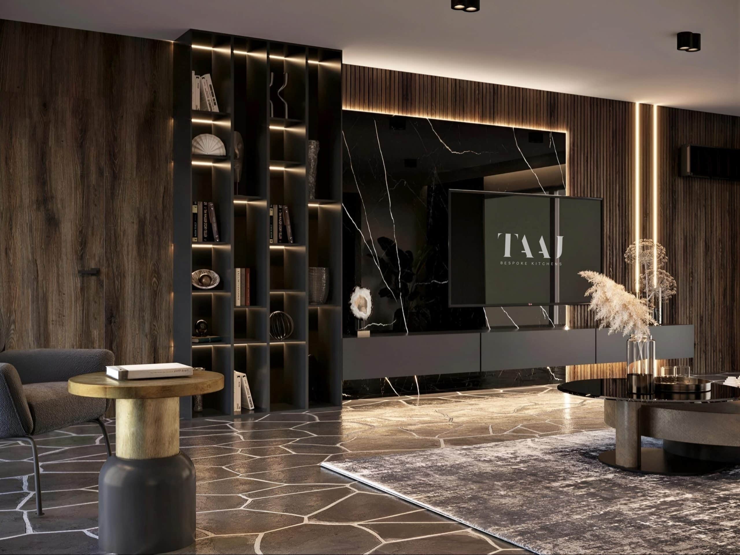 Our bespoke media units offer a perfect blend of style and function for your living space. TAAJ Kitchens design and build completely bespoke units which are tailored to fit your exact needs and preferences.